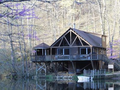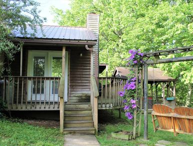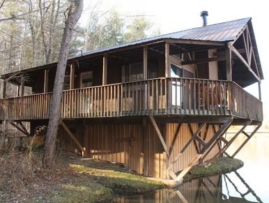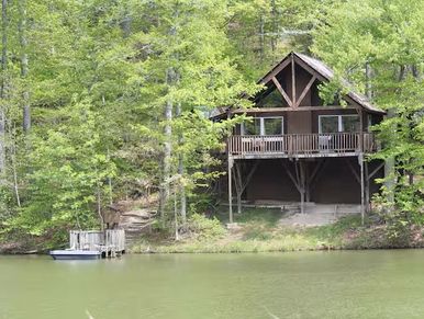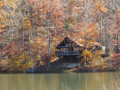 Overlooking the lake, this charming 1-bedroom, 1-bath cabin is the perfect romantic retreat for couples seeking peaceful views and quiet moments together.